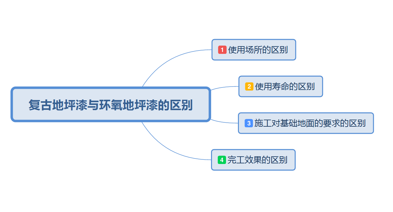 復(fù)古地坪漆與環(huán)氧地坪漆之間是存在著很多的差別的,比如使用場所、使用說明、對基礎(chǔ)地面的要求以及完工之后的一些效果,接下來小編就帶著大家一起看一看“復(fù)古地坪漆與環(huán)氧地坪漆的區(qū)別”。 復(fù)古地坪