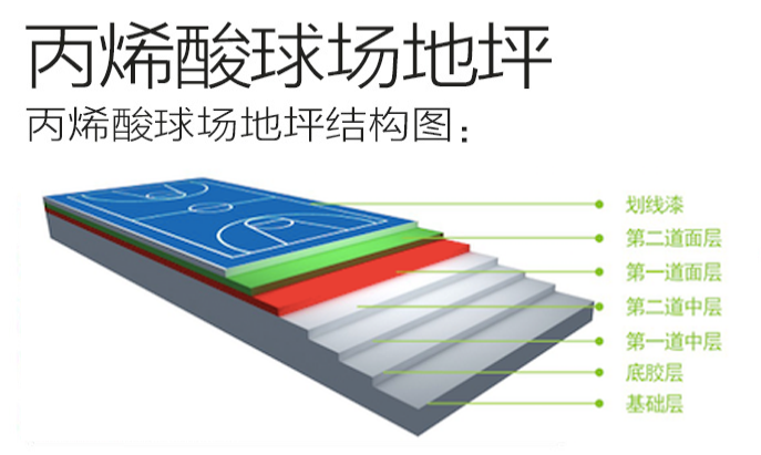 4、無毒、無石棉、環(huán)保。硬地烯丙酸球場對地基懇求低,造價低,腳感硬,摩擦力大,硬地烯酸球場球反彈速度提高,適用于室外、室內(nèi)丙烯酸籃球場、網(wǎng)球場施工建設(shè);彈性丙稀酸球場對基礎(chǔ)懇求較高,造價高,腳感軟硬適度,球反彈速度正常,摔倒時不易受傷。適用于各種室內(nèi)、室外籃球場。丙烯酸球場施工的時間短,使用周期長。